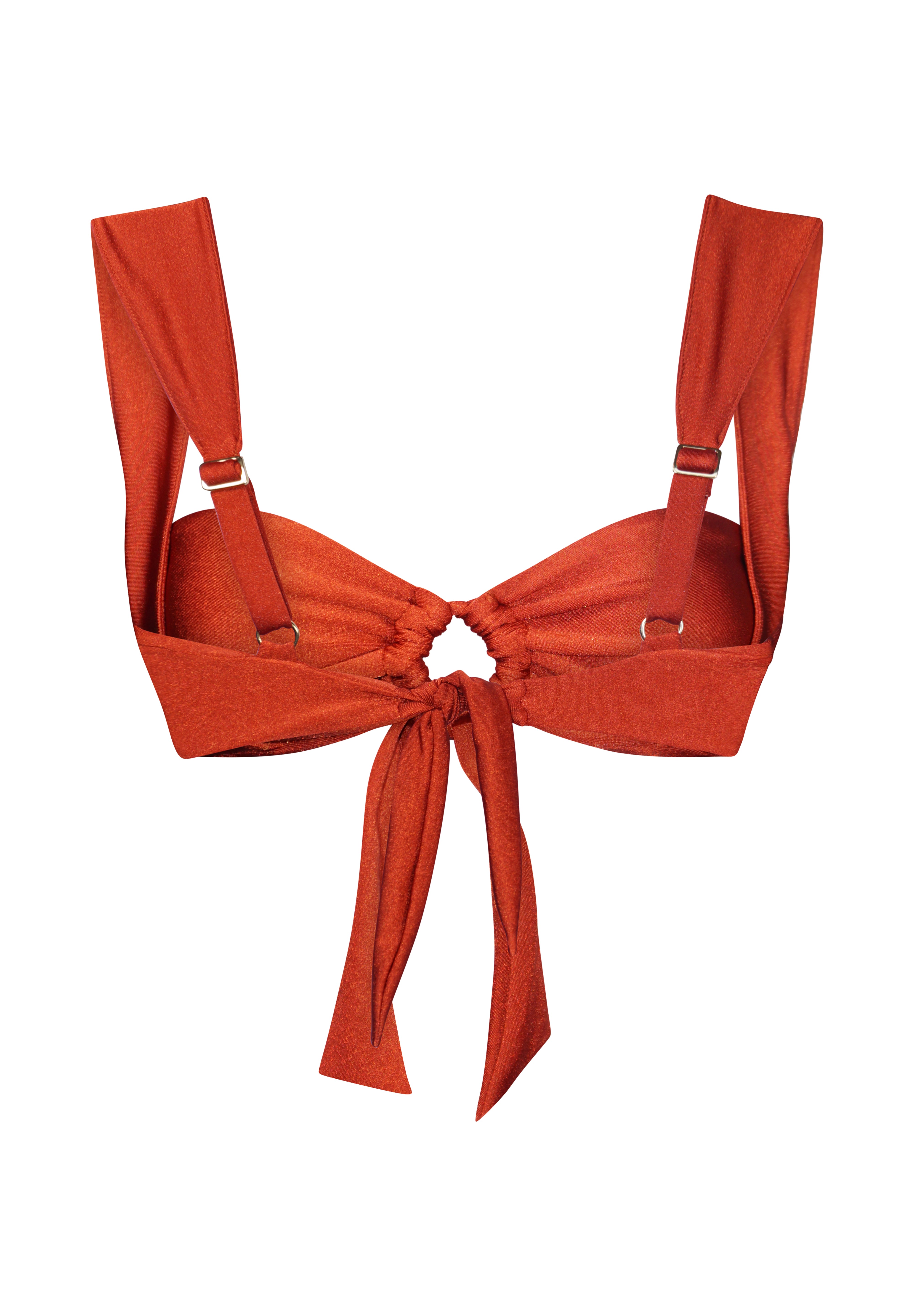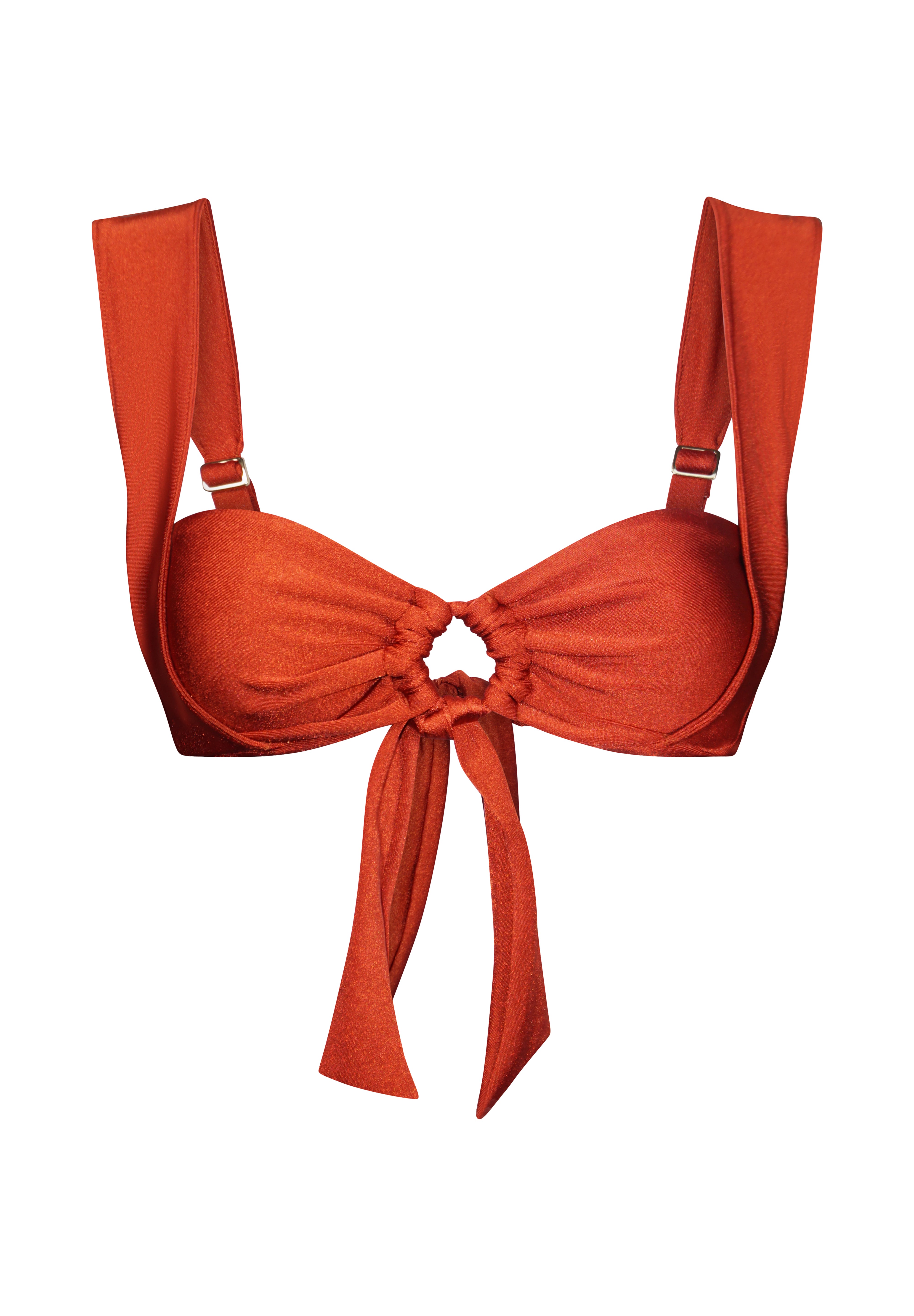 She's timeless, she's cute, and she's classy. Seen paired with our Salma bottom. Handcrafted from our Ginger Glaze shade, a shimmery fabric sure to compliment your glow.