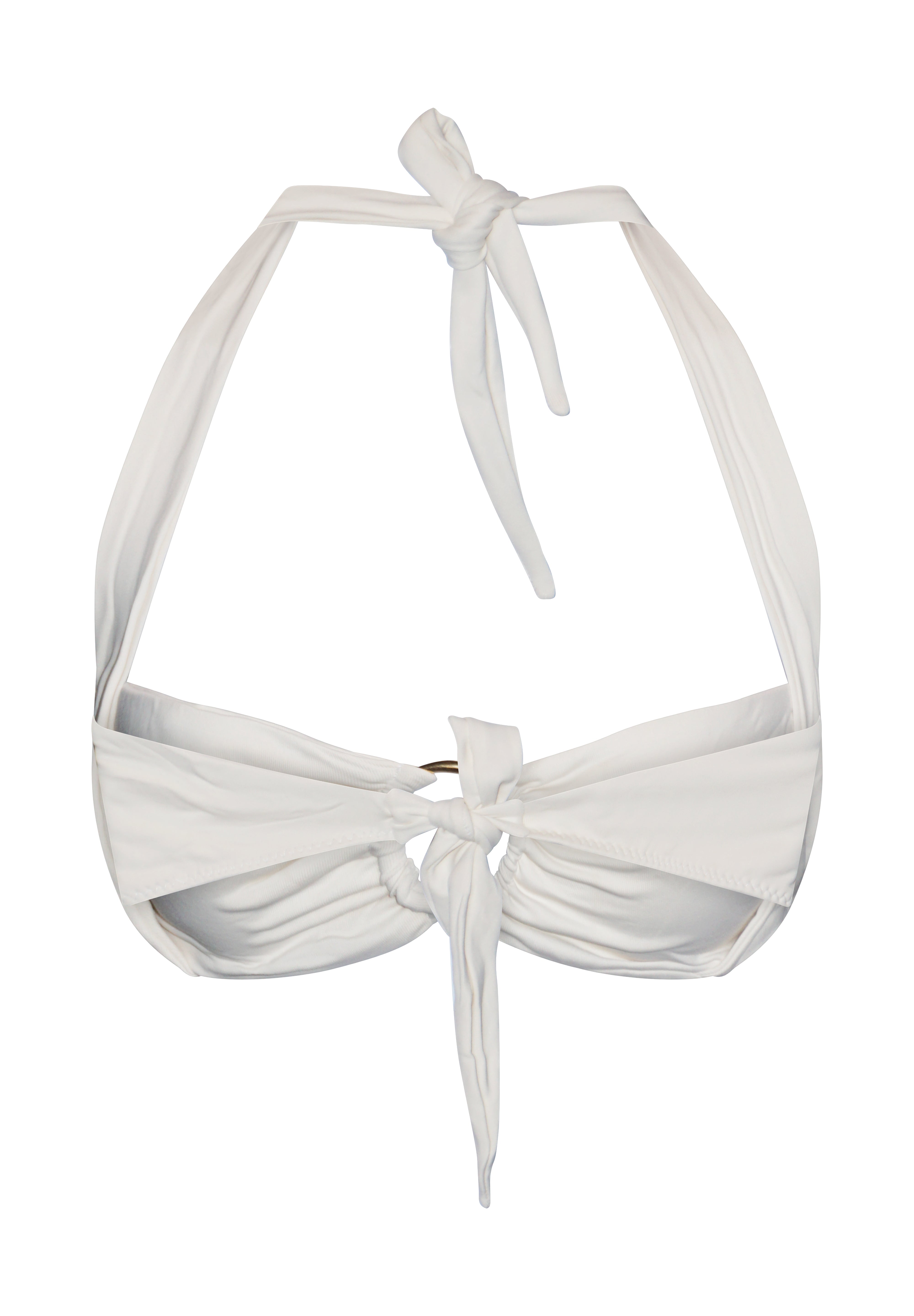 Elevate your beach game with VALERIA – an essential addition to your wardrobe. This bandeau beauty boasts a sleek silhouette, adorned with gold hardware and an adjustable halter tie for that perfect fit and added support. Transition seamlessly from sea to land with this versatile top.